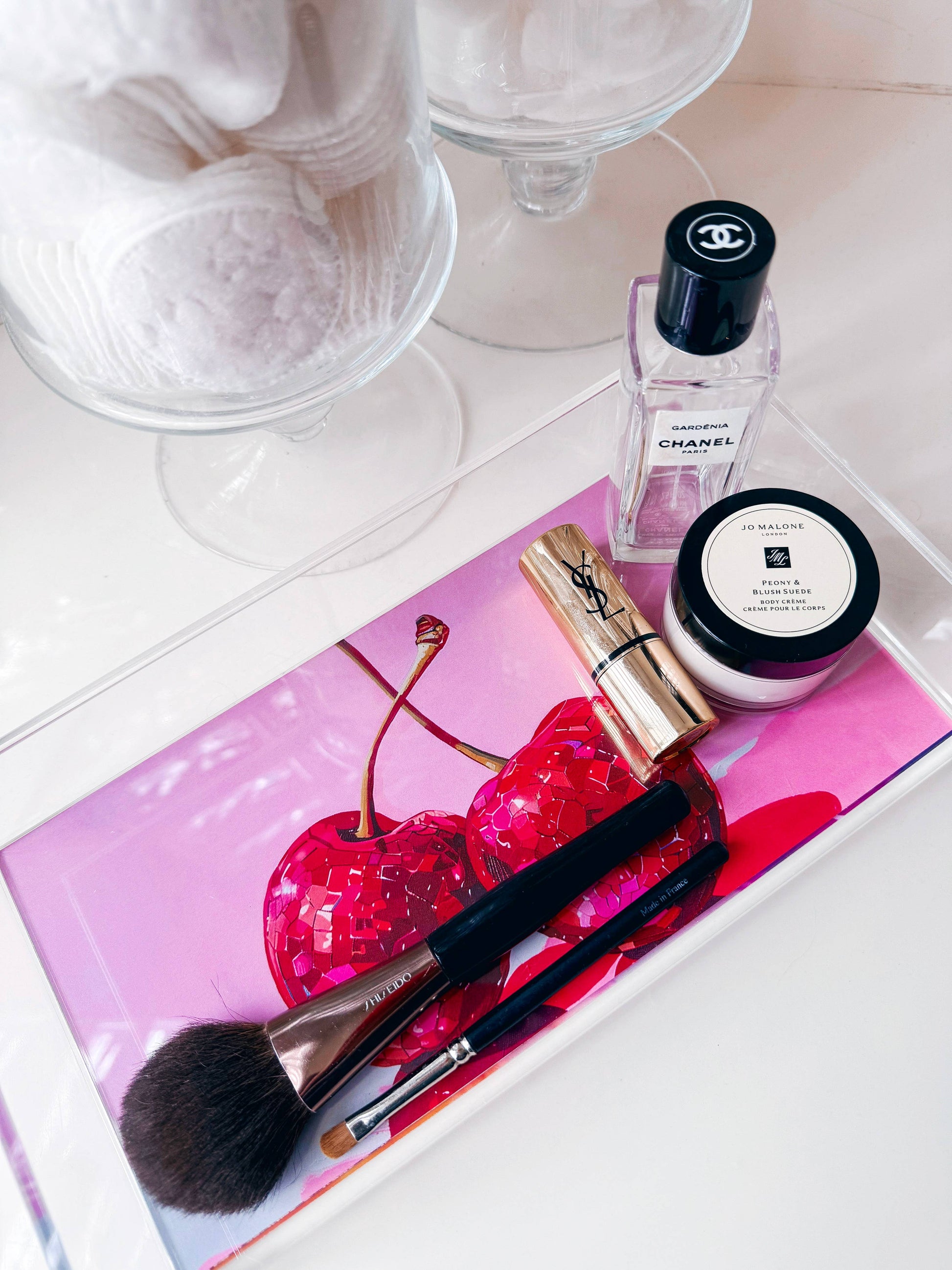 The trays are functional, fabulous and super cute. They are great for your bar cart, makeup counter or even for a catch all. The options and designs are endless!