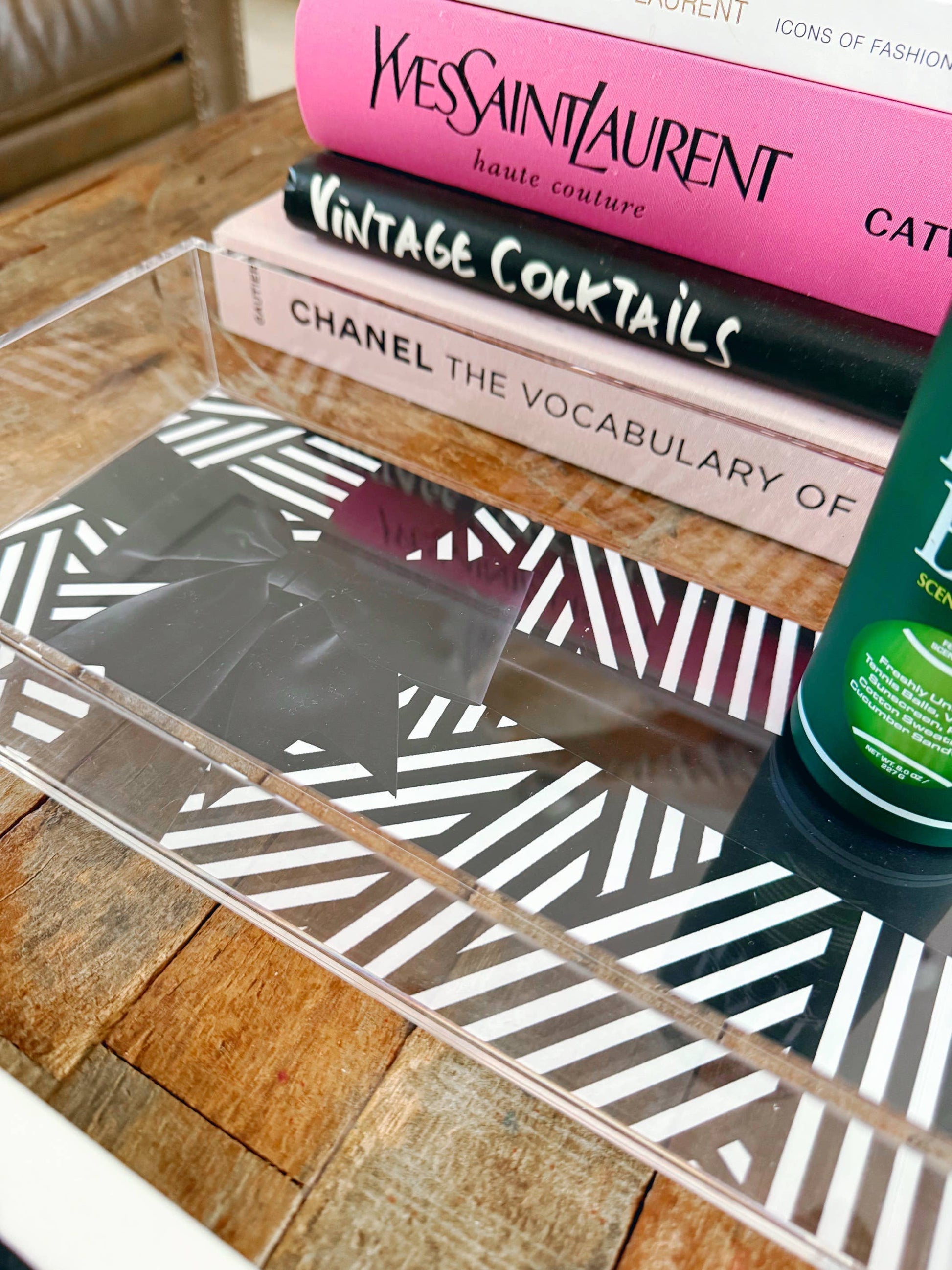 **The TAYLOR GRAY acrylic TRINKET TRAY is a 11x5.5 tray that perfectly fit our TRINKET insert designs. The patent pending pocket on the bottom of the tray allows the inserts to be easily interchanged and protected. Acrylic trays are all the rage and are definitely on trend. Why should you settle for one design when you can have FIVE designs and change them out on a whim?