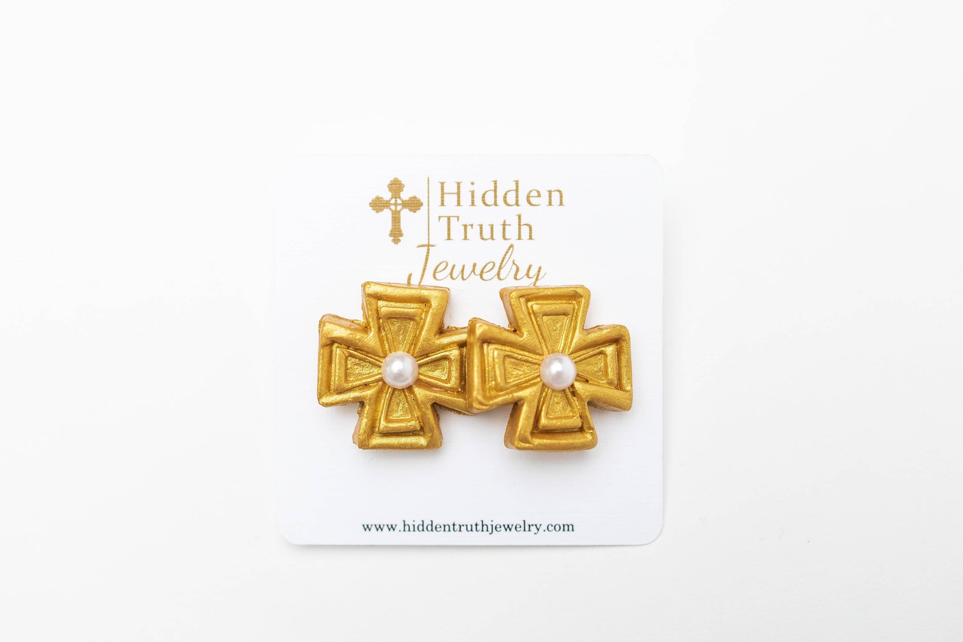 These medium sized cross studs have the perfect feminine touch with the pearl center! Feel beautiful and loved as you wear them and remember God loves you! Hidden Truth earrings are nickel free & hypoallergenic.