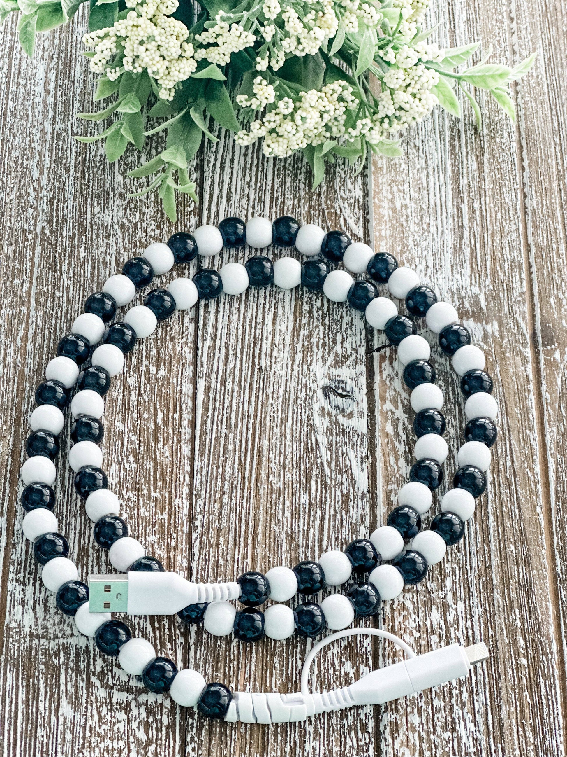 (💡) Black & White Beaded Design: Add a touch of personality to your charging routine with our unique and eye-catching beads. (⚡) 2 Styles in 1: No need to switch between chargers for different devices, our charger has got you covered.