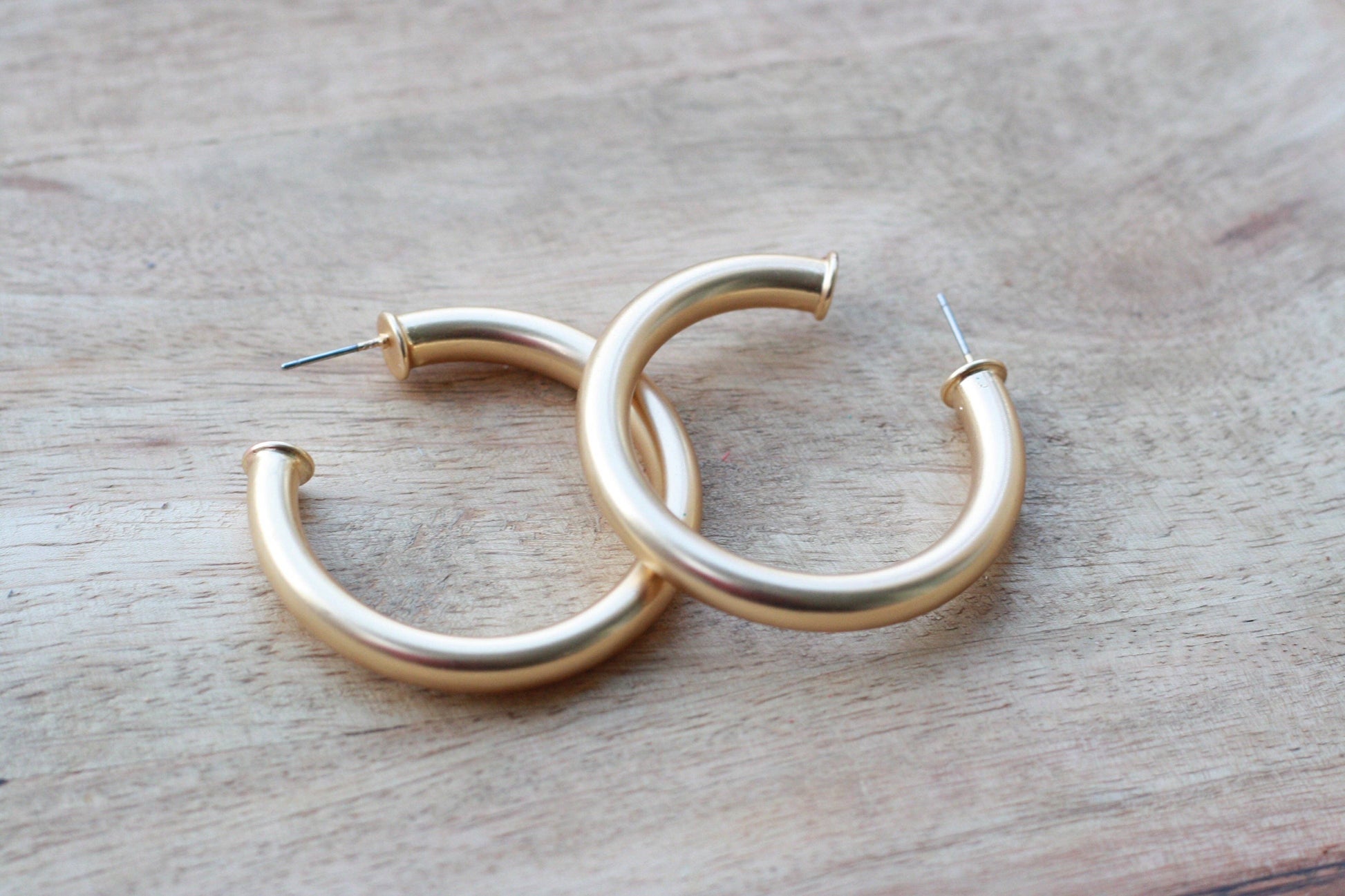 Everyday Brushed Gold Earrings | Classic Gold Hoops