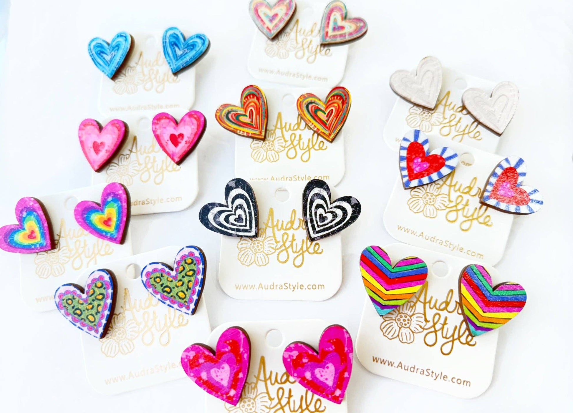 Each earring is made from lightweight wood and designed from Audra's artwork. All findings and posts are nickel-free.